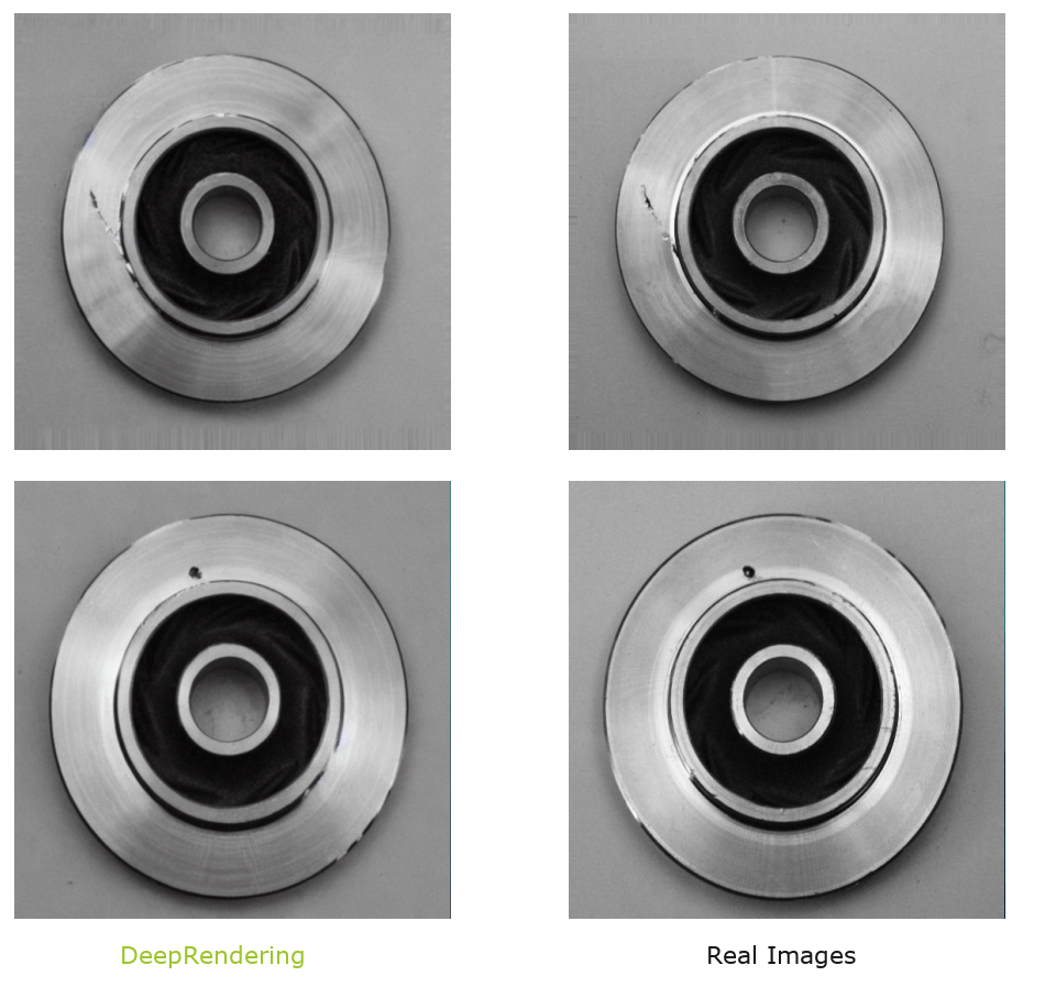 With DeepRendering you can generate super realistic synthetic images from your use case that can be used for your Computer Vision task and model trainings. As an example, with DeepRendering you can quickly generate synthetic defects. With just a small number of real-world samples, it enables the creation of large and representative datasets. This not only accelerates model deployment but also results in more robust and significantly more cost-effective AI models.